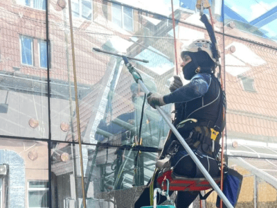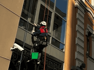 — Мытьё фасадов, окон и витражей на высоте